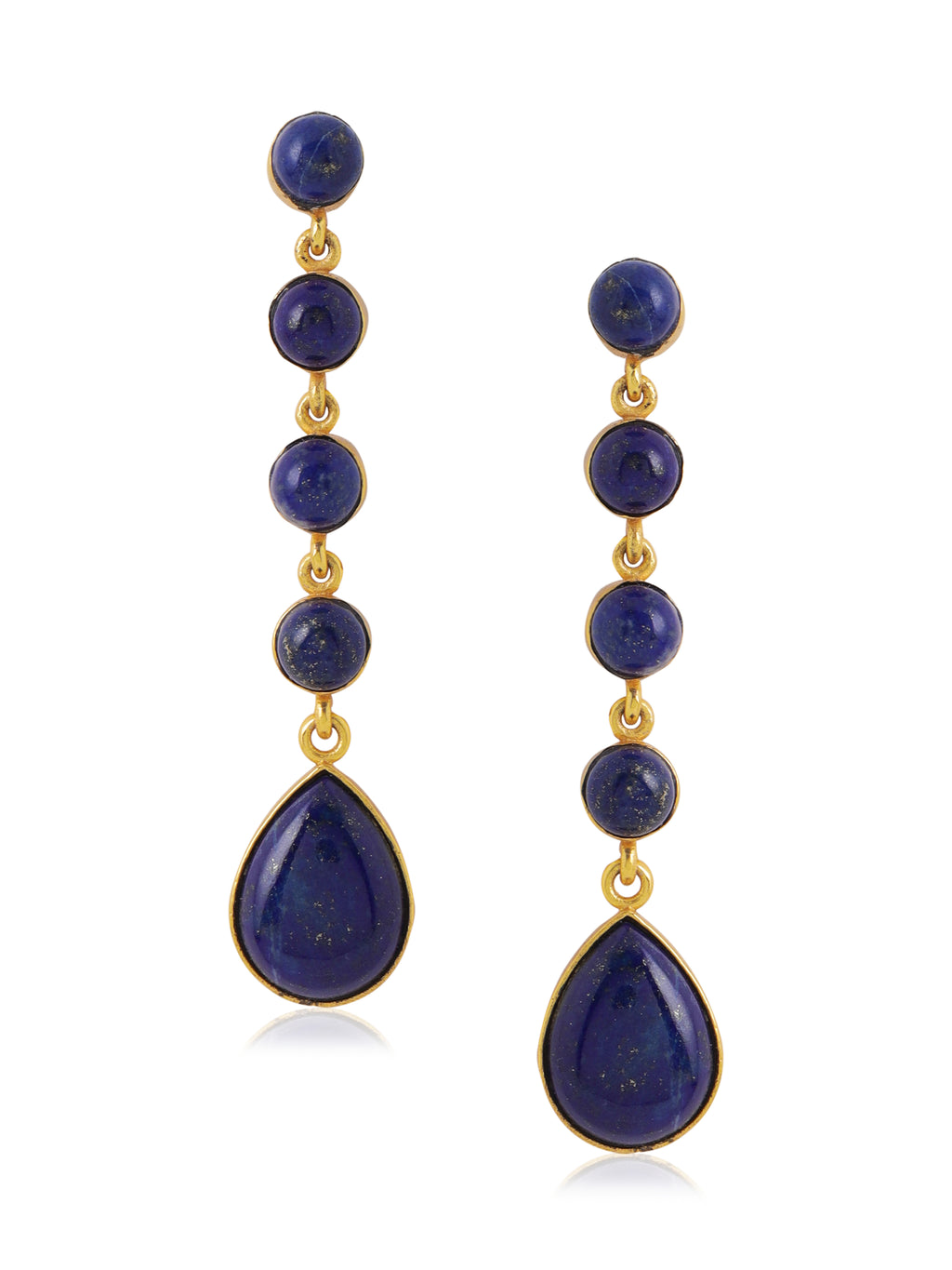 The vibrant blue hues and natural veining of the turquoise create a captivating contrast against the gold finish, offering a refined yet bold look. Lightweight and fluid in movement, these earrings add effortless sophistication to both daytime and evening ensembles.Â