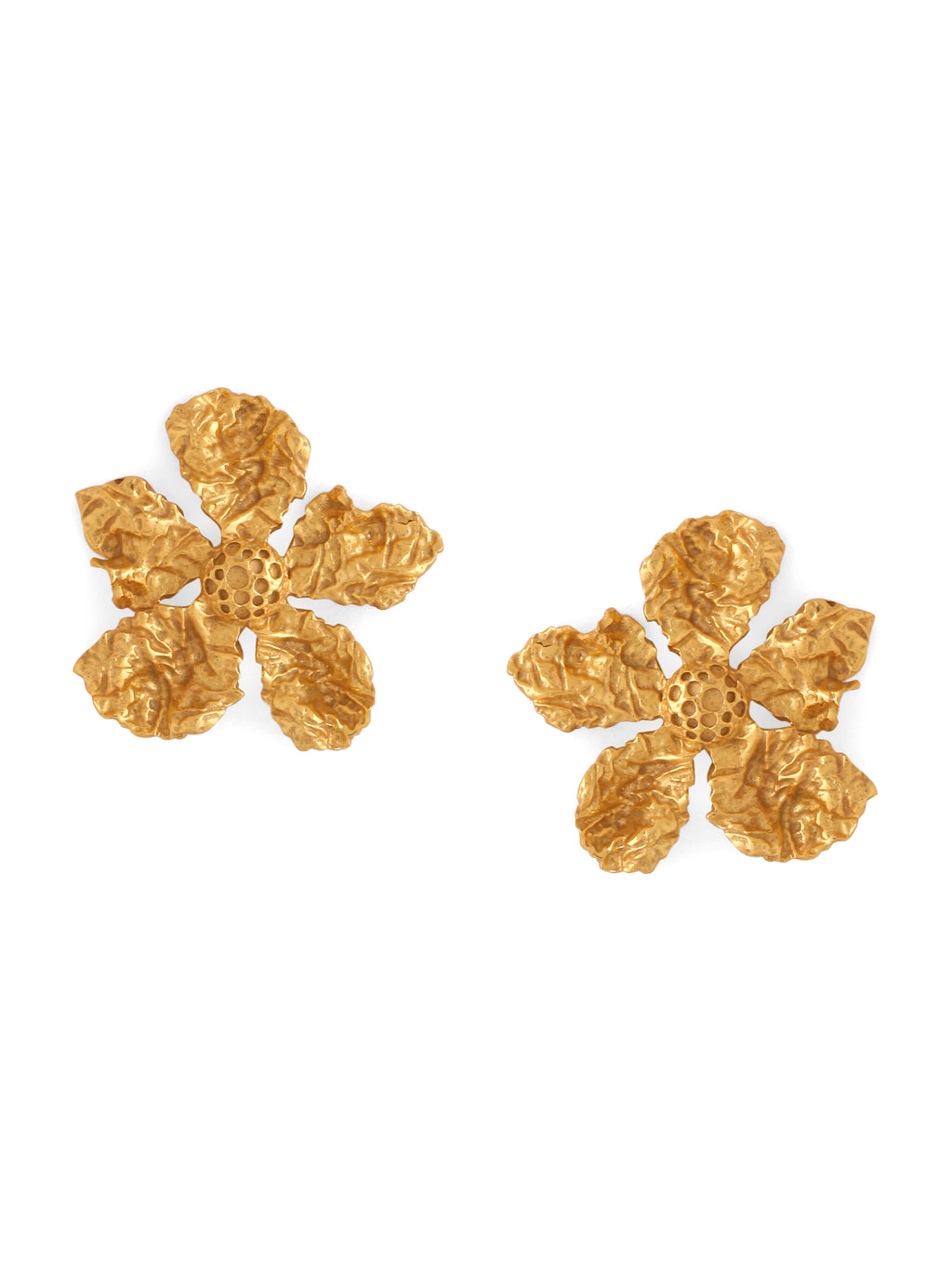 Gold-Tone Fan-Shaped Statement Stud Earrings Make a refined style statement with these gold-tone fan-shaped stud earrings, inspired by architectural forms...