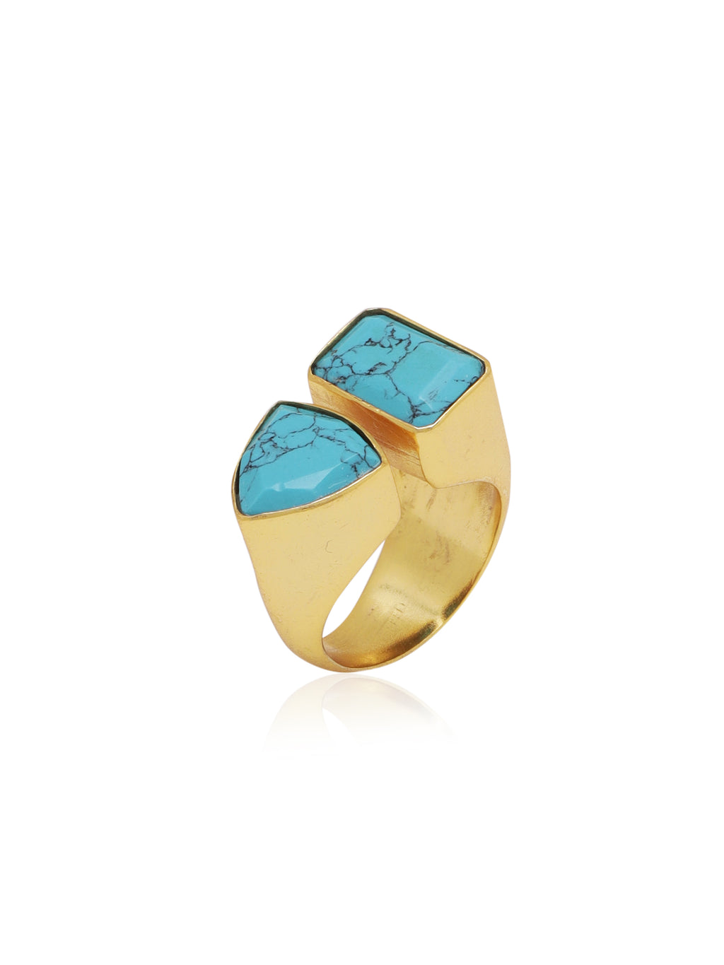Dual Collet Moonstone Open Ring – Gold Finish